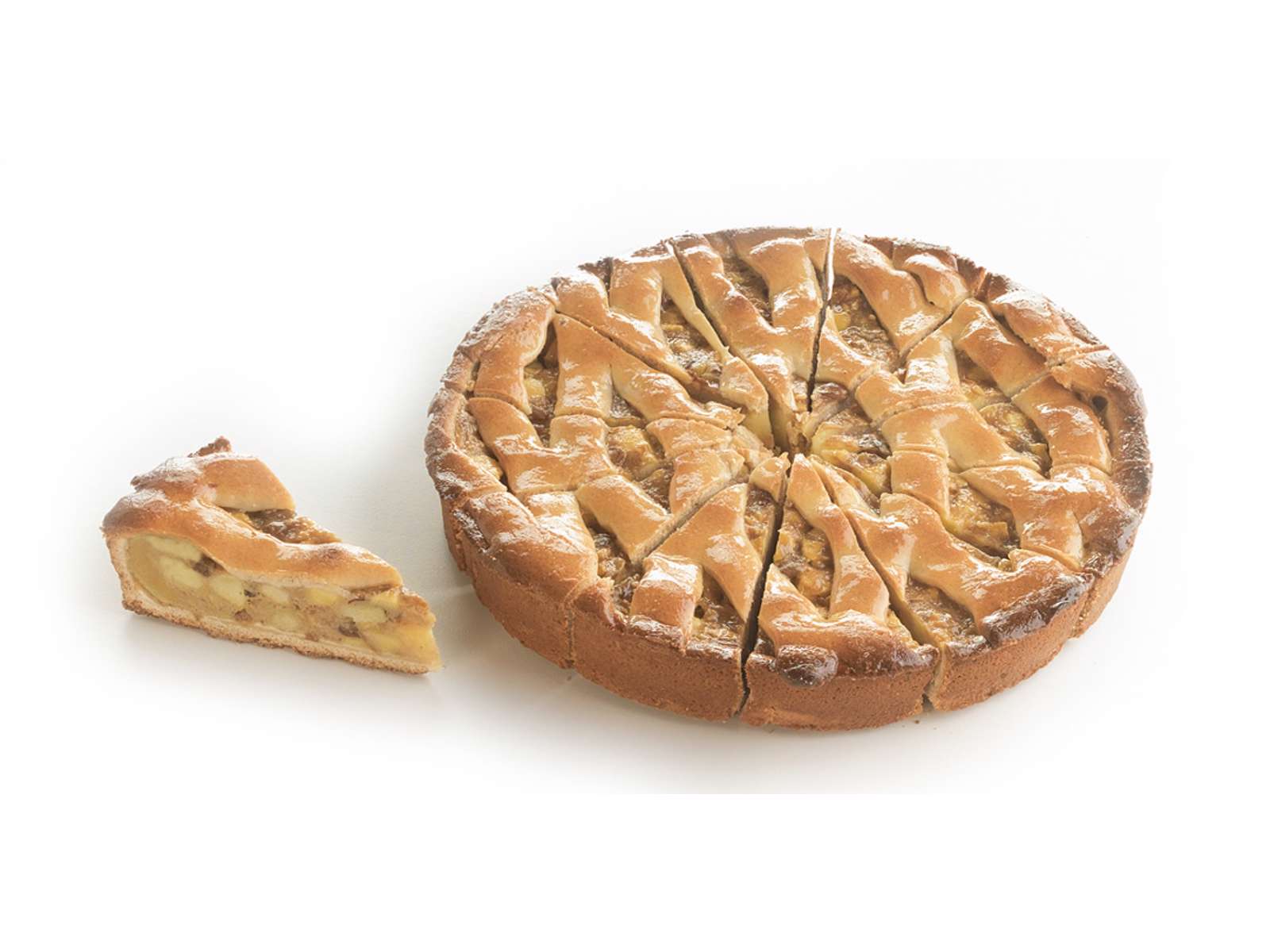 Æbletærte: Klassisk æbletærte med en sprød, gylden skorpe og et fyld af søde, saftige æbler. Perfekt som dessert, serveret med flødeskum, vaniljeis eller creme fraiche. En tidløs favorit til både hverdag og festlige lejligheder.