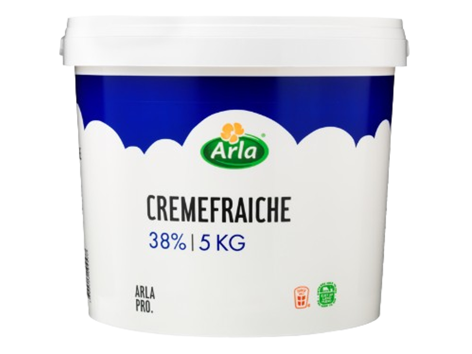 Arla creme fraiche 38% i 5kg spande – fyldig og frisk smag med en blød konsistens. Ideel til professionelle køkkener, hvor større mængder er nødvendige for effektiv madlavning og tilberedning.