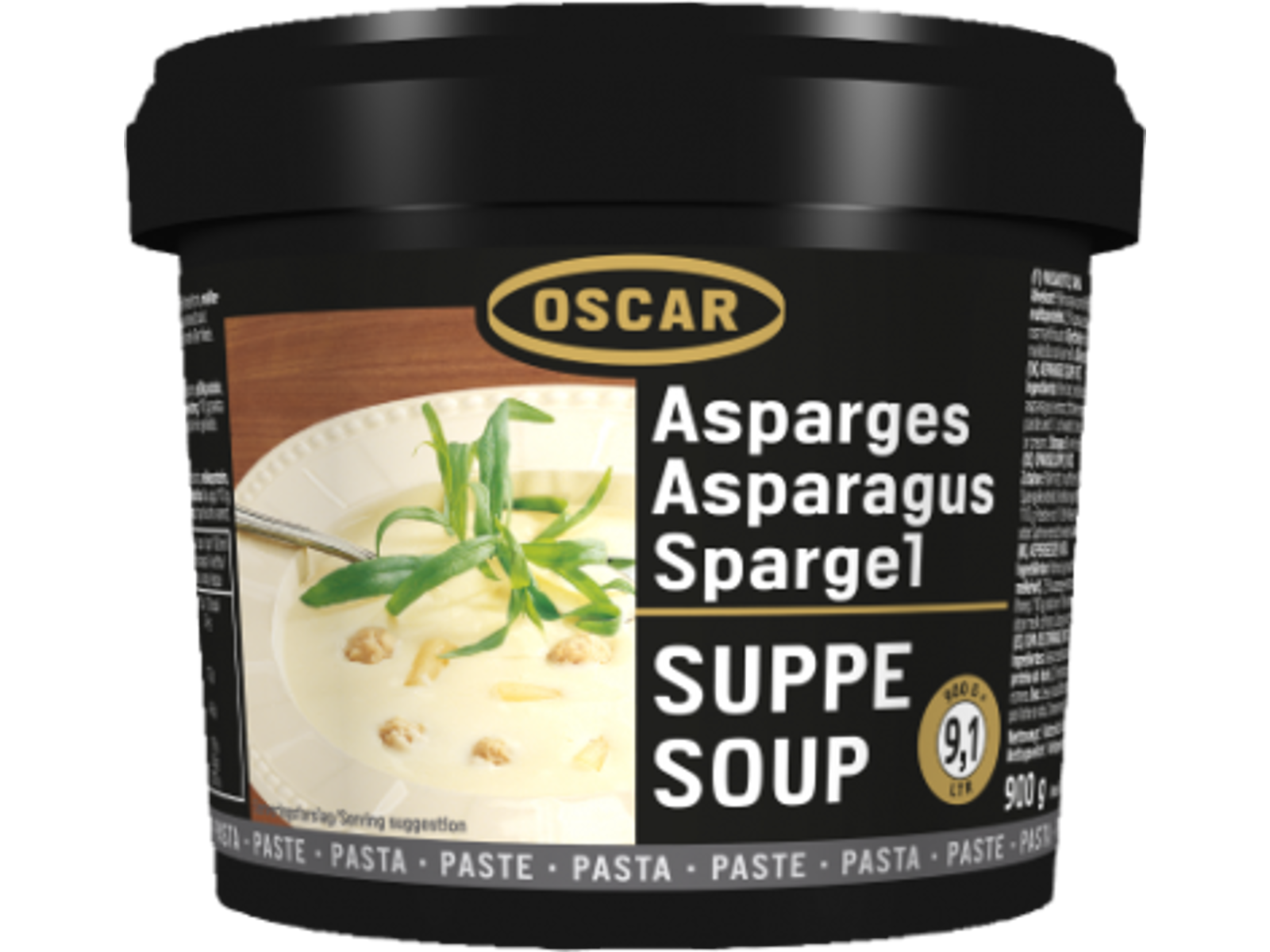 Oscar Aspargessuppe Pasta: En lækker aspargessuppe i en cremet pastaform, der byder på friske og delikate smage. Perfekt som forret eller let hovedret, denne ret tilføjer en elegant dimension til menuen og vil imponere dine gæster med sin fine smag.